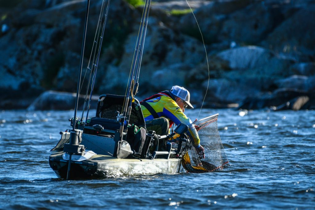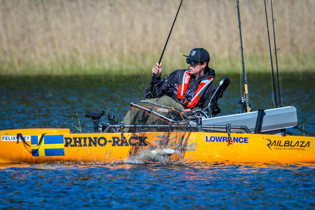Siamo entrati nel vivo con la prima giornata di gare al mondiale Hobie Fishing ad Amal sul lago Vanerm in Svezia. Ore 7 del mattino segnale di partenza dopo l’inno nazionale svedese e con il nuovissimo Hobie Pro Angler 14. Temperatura dell’aria fresca e vento da nord-est sui 7/8 nodi. Temperature che nel corso della mattinata sono salite fino a raggiungere condizioni più miti e confortevoli, per arrivare al pomeriggio in totale assenza di vento. Condizioni per la prima giornata perfette.