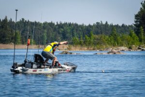 Oggi giorno di apprendimento della location e di conoscenza del campo di gara e dell’attrezzatura ad Amal sul lago Vanerm in Svezia per il settimo Campionato del mondo Hobie Fishing, dopo la giornata di ieri dedicata alle registrazioni e conclusasi con la cena inaugurale. Primo giorno chiamato pre-fishing day. Partenza alle 8 del mattino per i 47 atleti e rientro alle 14. Condizioni eccellenti, con caldo e temperatura dell’acqua sui 18 gradi. Pescato per quasi tutti i concorrenti, con misure di tutto rispetto, un luccio di un metro a soli 10 minuti dall’inizio e altri 4 di peso a metà mattinata. Anche Marco non è rimasto a secco con due catture.