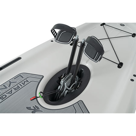 Assapora la potenza della propulsione a pedale, sia in marcia avanti che in retromarcia. La velocità senza sforzo del MirageDrive 180 con pinne kick-up combinate con lo scafo aerodinamico ed elegante del Lynx rendono la corsa davvero epica. Fai un salto di qualità, mentre scorri rapidamente sulla superficie dell’acqua, intagliando curve e lasciandoti il mondo alle spalle. Il design a fondo piatto del Lynx offre stabilità che induce fiducia e la massima manovrabilità. Meno è meglio quando si tratta di costruzione. I materiali leggeri incontrano prestazioni ottimali con la tecnologia ACE-TEC che è abbastanza resistente per i fine settimana fuori dalla rete, esplorando acque inesplorate e una bella battaglia al lago con i tuoi bambini. Con un peso di soli 21kg. e dotato di pattini di carico posteriore, gettalo facilmente sul tetto della tua auto per un trasporto senza complicazioni. Il miglior sedile della casa, progettato per il comfort con traspirante, mono-rete, rialzato per tenerti asciutto tutto il giorno. L’ampio arco crea una guida più fluida e ampio spazio per la tua attrezzatura. Meticolosamente realizzato con binari sagomati e un supporto per accessori, rendilo tuo con il nostro kit per la vela, il parasole Bimini e altri accessori.