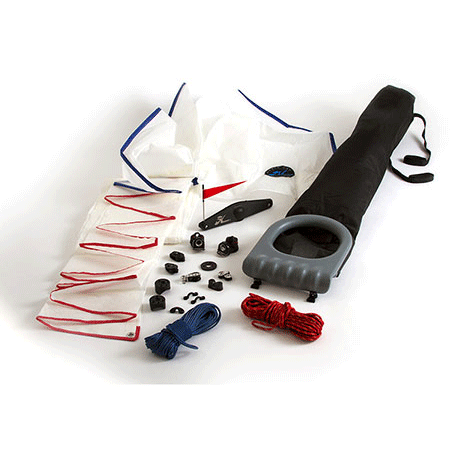 Il kit comprende tutto per il montaggio: gennaker, sacca snuffer, drizza, bozzelleria e viteria. Nel kit è incluso anche il segnavento per testa d’albero compatibile con il kit.