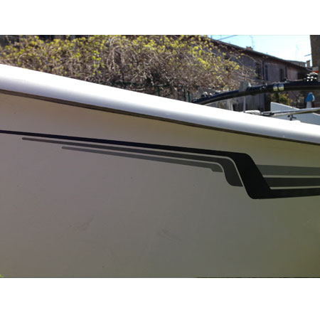 Adesivo puntale di prua chiamato “Delfino” colore nero,grigio e argento.