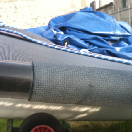 Barra laterale in alluminio anodizzato nero, con inferitura per trampolino e antidrucciolo in neoprene.