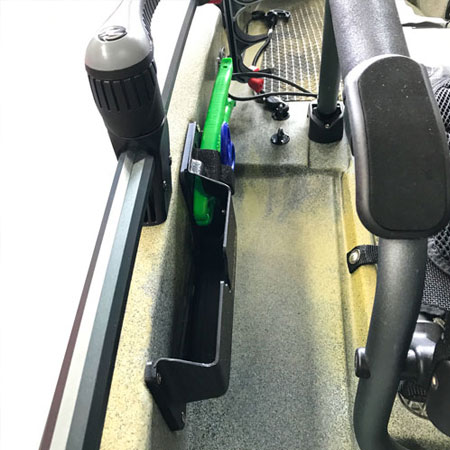 Il Side Bro (lato destro) è progettato per contenere pinze, forbici, impugnature per pesci, piccola scatola rossa per piatti e molto altro. Questo è un sostituto diretto per le tasche laterali Hobie® o si adatta a qualsiasi superficie piana.