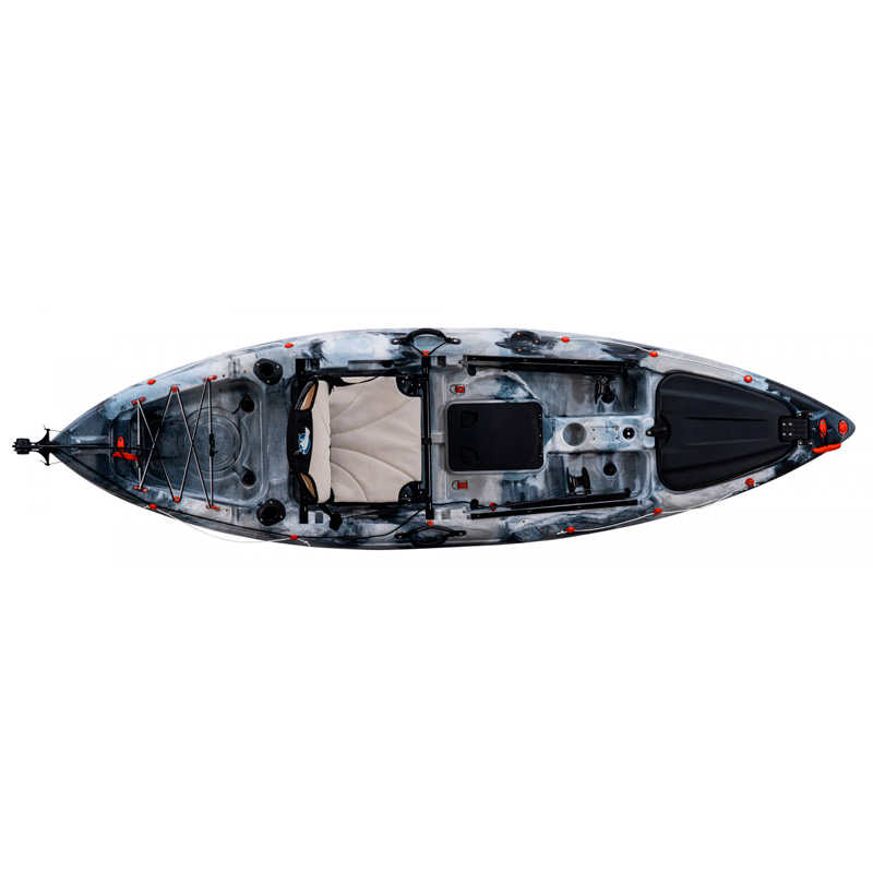 Con un fondo piatto appositamente progettato e bordi angolati, questo kayak massimizza la stabilità e consente una guida fluida e facile. La sua chiglia anteriore affilata e la poppa a V forniscono una buona velocità di crociera e il suo nuovo sistema di timone e pedaliera consente una maggiore manovrabilità sull’acqua.