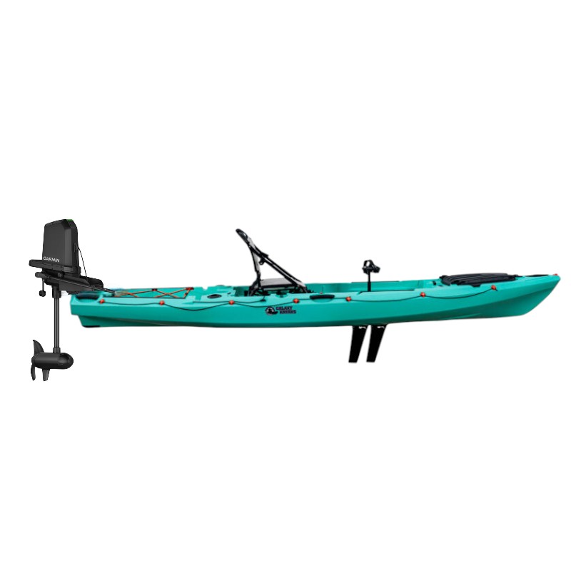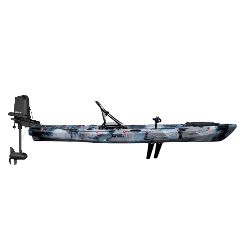 Kayak Galaxy Wildcat con accessori di serie pagaia, seggiolino e pedale Flipper.