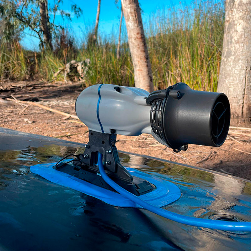 Per i gommoni che non dispongono di una scatola/piastra per le pinne, è possibile incollare la piastra per pinne flessibile in dotazione sul fondo dell’imbarcazione utilizzando una colla adesiva per PVC o uretano. Utilizzando poi l’adattatore Slide & Lock in dotazione, sarà possibile far scorrere facilmente il motore Bixpy sul box pinne appena installato.