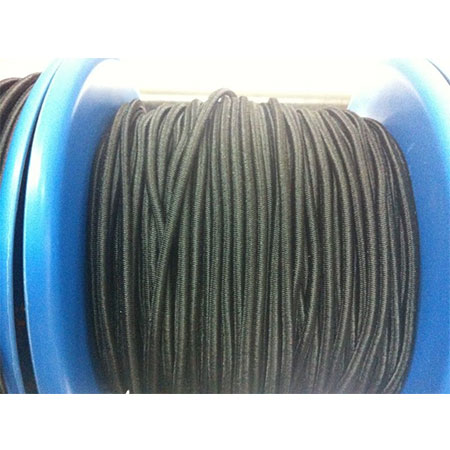 Corda elastica composta all’interno di lattice di gomma e ricoperta all’esterno di multifilamenti di poliestere. Colore nero