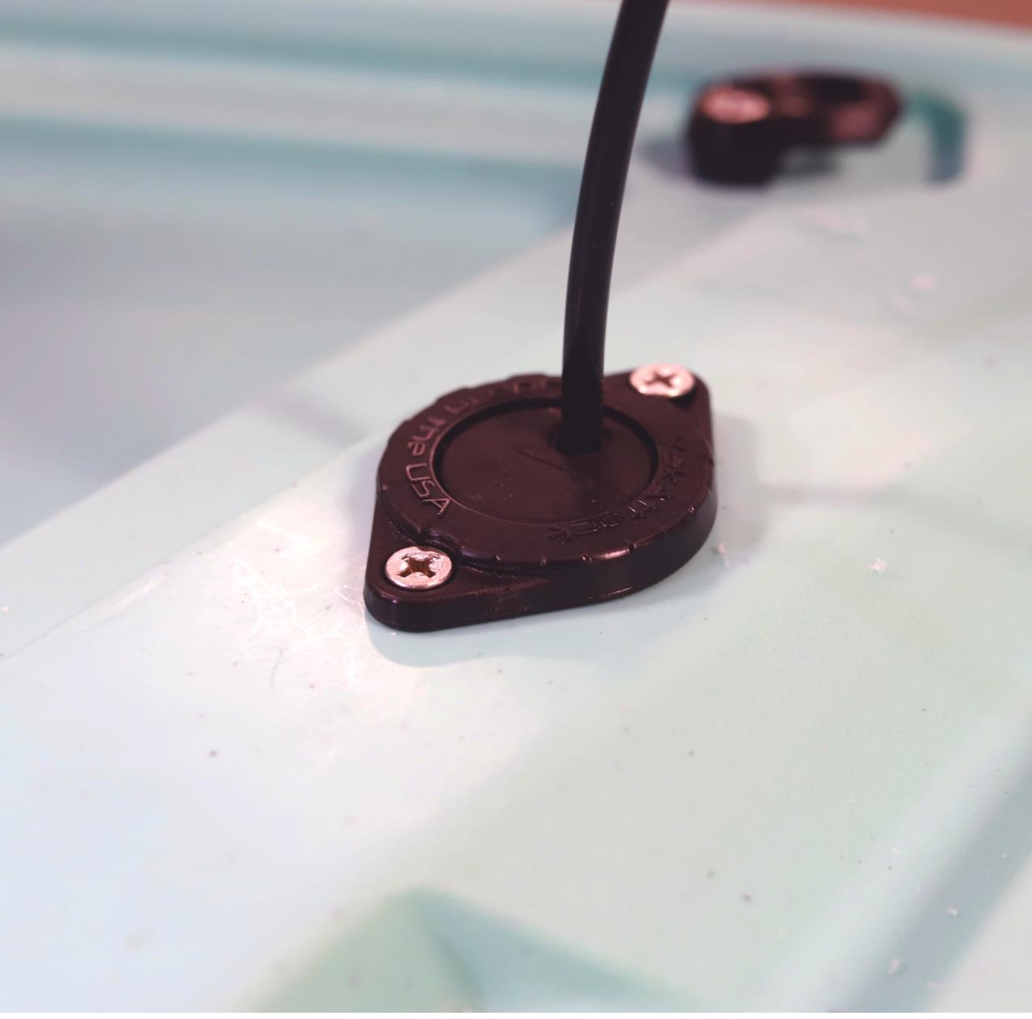 Il kit di cablaggio passante YakAttack GridLoc è perfetto per i popolari pod ecoscandaglio rimovibili sui kayak e per altre applicazioni in cui è necessario far passare i cavi attraverso lo scafo di un kayak o di una barca