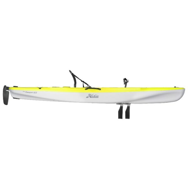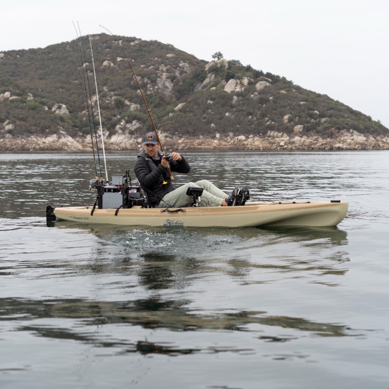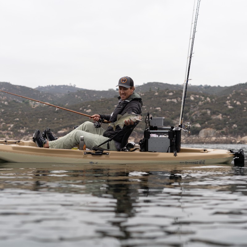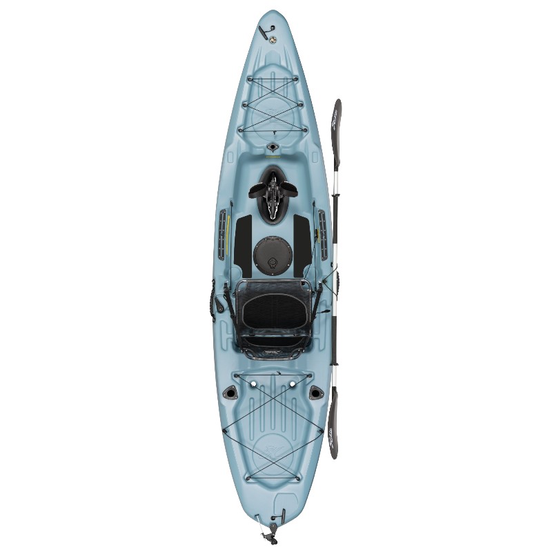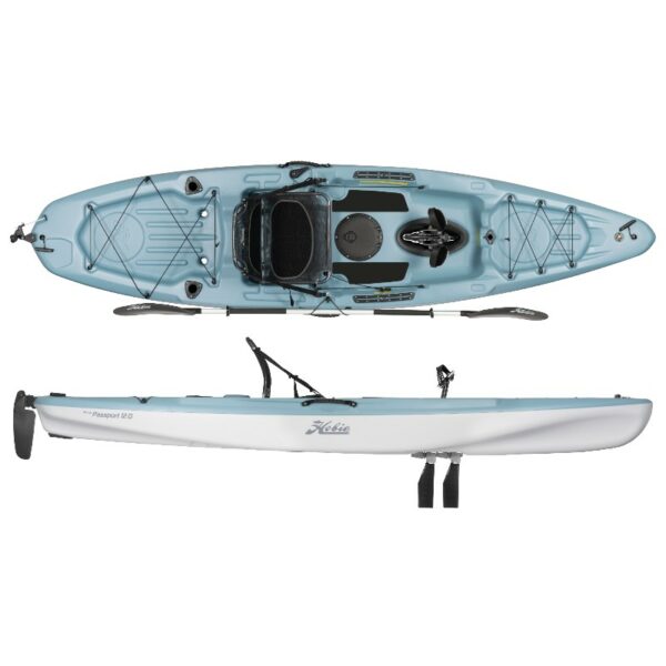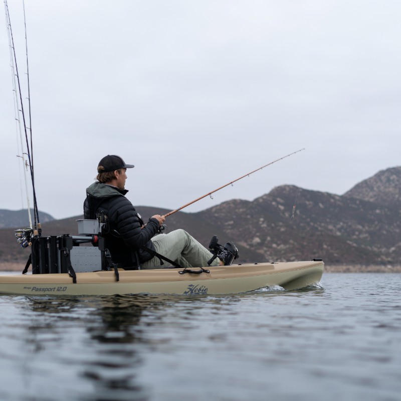 Il Mirage Passport 12 ti porta dove vuoi andare con facilità della propulsione a pedale. Rilassarsi sul sedile in mesh traspirante del Passport, un’area di pozzetto più ampia rivestita in EVA offre una piattaforma stabile per stare in piedi e allungare le gambe o lanciare un’esca. I pescatori saranno felici di sapere che il Passport 12 ha una cavità per l’alloggiamento del trasduttore per una semplice installazione dell’ecoscandaglio e la predisposizione per la staffa Power-Pole® Micro, il sistema di ancoraggio per fondali bassi. Altre caratteristiche includono il sistema di sterzo con timone ripiegabile, due supporti per canna da pesca, binari accessori e portaoggetti sotto il sedile.