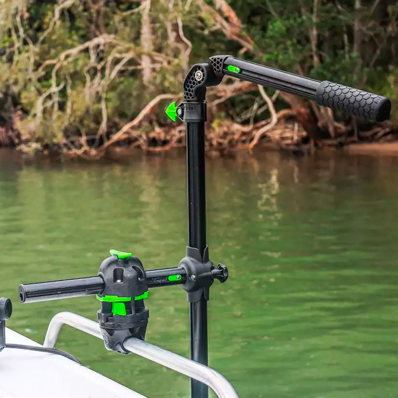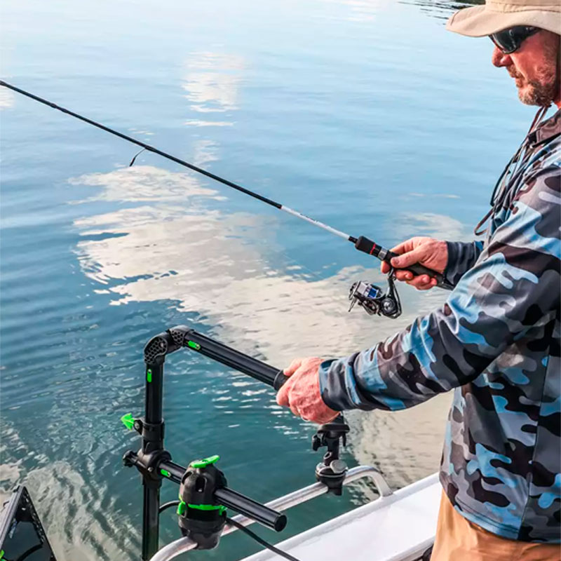 Installa senza sforzo un’asta per trasduttore live RAILBLAZA HEXX™, un fishfinder per carichi pesanti HEXX o il portacanne HEXX pronto per l’attacco sui tuoi binari. Solidamente costruito con materiali durevoli, l’intelligente HEXX RailMount è dotato di una vite di bloccaggio integrata per una maggiore potenza di tenuta.
