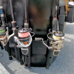 Il RodStow Double è disponibile in nero o bianco, viene fornito con elementi di fissaggio in acciaio inossidabile e può essere installato in pochi minuti. È dotato di un contenitore per esche, tracce e altre attrezzature, è anche abbastanza grande da contenere una piccola cassetta degli attrezzi. Questi portacanna hanno un perno cardanico rimovibile che puoi lasciare per sostenere l’asta e fermare la rotazione, o rimuovere per far passare l’asta.