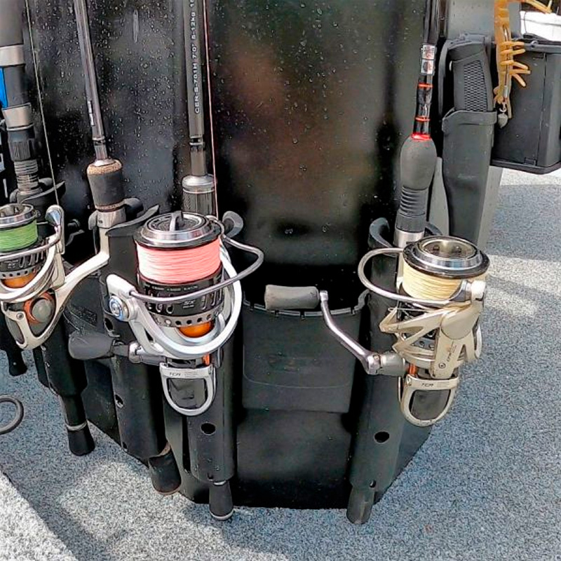 Il montaggio sfalsato è possibile, offrendoti una soluzione per riporre bobine più grandi, senza che si urtino tra loro. Il portacanna verticale RodStow è adatto per la maggior parte delle canne e dei mulinelli, inclusi mulinelli da spinning, trigger, barca e gioco e qualsiasi lunghezza di canna da pesca.