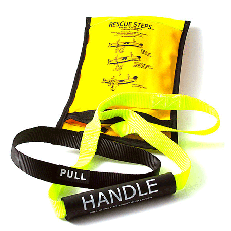 Dispositivo di sicurezza per agevolare la salita sul kayak in caso di ribaltamento, tramite una maniglia per la mano e una per il piede.