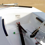 La deriva basculante inserita in un ampio pozzetto permette a due persone di navigare tranquillamente in comodità. L’assenza di rinvii a poppa non compromettono la navigazione, la comoda